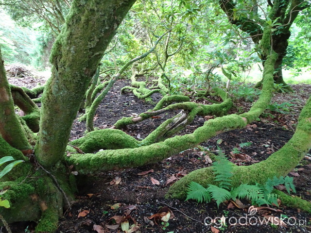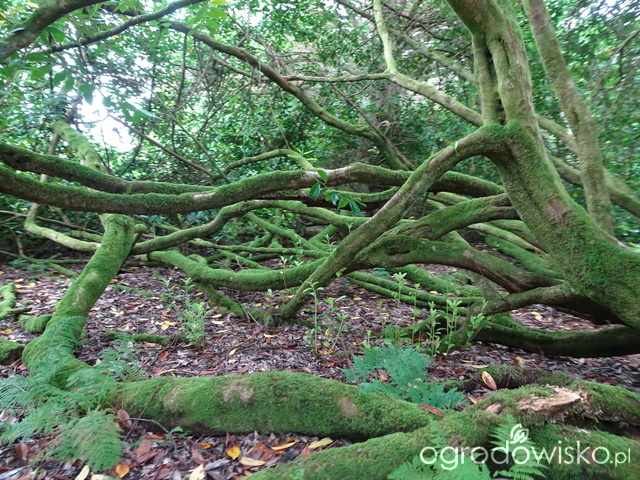 Kolejną część zajmują mające wiele lat, olbrzymie rhododendrony.