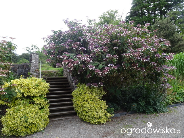 Dochodzimy do szerokiej baraty pod murem. Na jej początku przy schodach posadzone są hortensje kosmate.