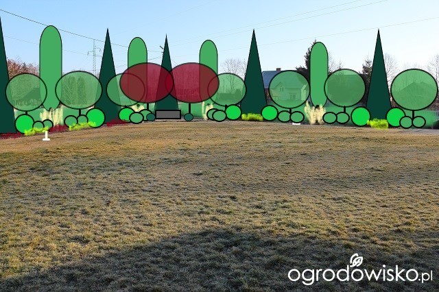 Jasno zielone koło tuj to limki albo limki z miskantami na przemian. Może też być szpaler miskantów samych wtedy w linii drzew limelighty. Nie wiem jakie wysokie one rosną mogą zasłonić gracki?