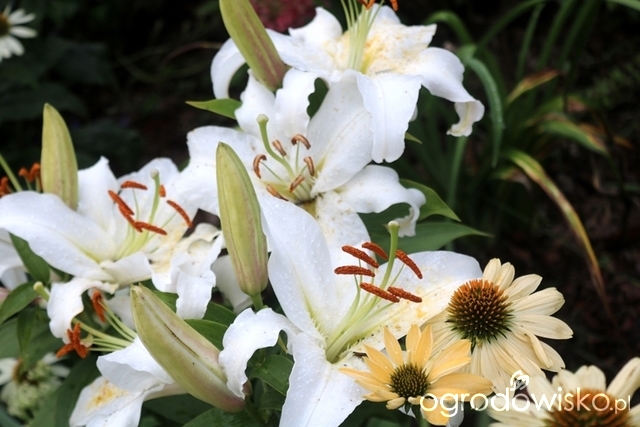 Połączenie jeżówek i hortensji się sprawdza. Nie mam jeszcze tych zwykłych białych i żółtych. Podobają mi się te żółte. Mam problem z dobraniem kwiatków do mojej gliny i jeszcze plagi ślimaków.