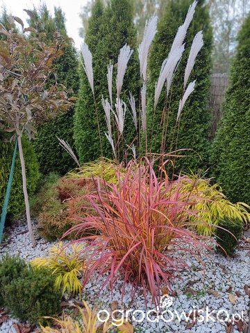 Miskant Lady in Red, no ładny jest sadzony jesienią w ubiegłym roku.