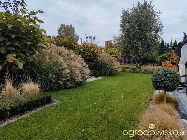 Mam plan, aby wiosną urozmaicić kolorystycznie tutaj gdzie mam olbrzymie miskanty Silberspinne po trzy z obu stron - odmłodzić i po podziale po brzegach posadzić właśnie Lady in Red. Ja je widzę z jadalni i kolor będzie wskazany