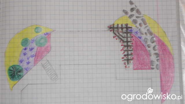 Dziś pod nóż - a raczej ołówek - poszedł taras, tzn. rabaty koło tarasu.