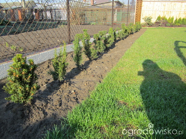 Jak widzicie rosną cisy. Myślę, że nie ma co kombinować z różnorodną rabatą.