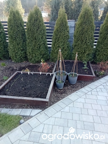 Na koniec rzut oka na skrzyneczki warzywne. W donicach drobne bratki dopiero się zbierają