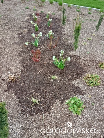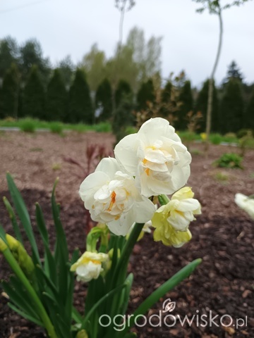 Wsadziłam 8 kęp narcyzów bridal crown między piwoniami.