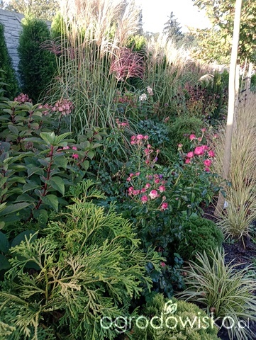 Tu troche widać wims red. Rosną w gąszczu z różą candy rokoko.