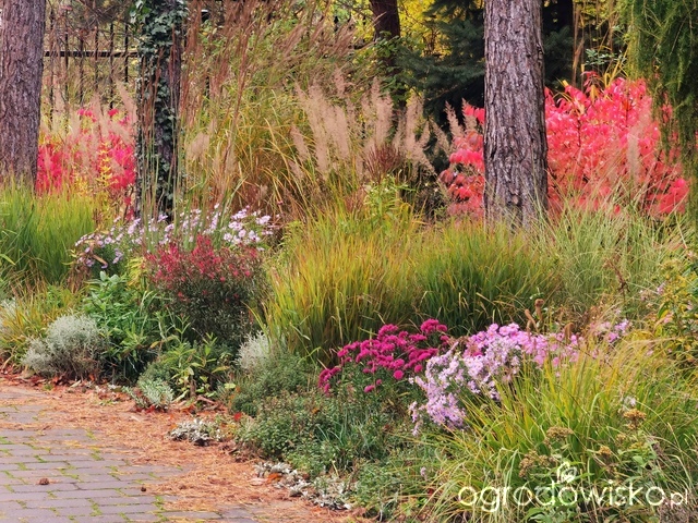 Trzmieliny aż świecą w tym słońcu. Astry też bardzo ładne i Burgundy Ice. U mnie zakwitła paroma kwiatkami tylko.