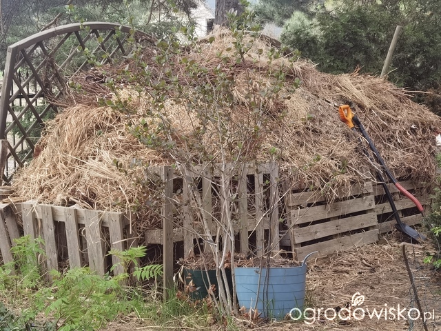 Trochę ucięłam kompostownik. Tam są cztery komory z palet, ciut wyższa "kupka" ode mnie