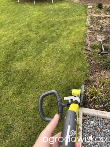 w koncu wypróbowałam. i na serio jestem zadowolona. choć fajnie jakby jeszcze po stronie rabaty, na szerokosc jakiś 10cm podcinał tą trawę. Ale nawet tylko z tą linia jest fajnie. Nie miałam żadnego prowadnika, a poszło względnie prosto. Ten nóź jst solidny - czasem widać było iskry jak spotkał jakiś kamyk w ziemi. Jedynie trzeba uważać bo idąc do przodu może rozrzucać ziemię...czyli lepiej nie kierować na fasadę domu