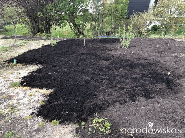 Fajnie, że kupka kompostu tak pomalutku znika. A jednak dużo go rozsypuję. Nie jest to warstwa 10cm, ale myślę, że takie 5cm na początek to i tak nieźle.
