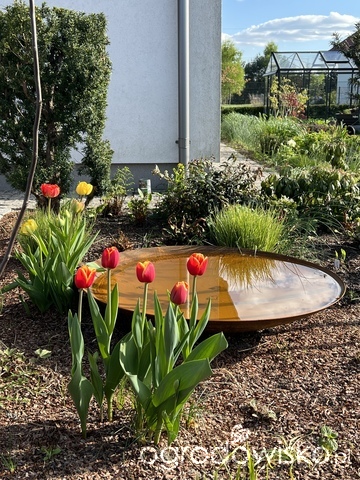 Agato Brzozowa, powtórzę, próbuj. Czerwonawe tulipany nie są moją bajką i przerzucę je inną na rabatę, ciut z tyłu. Zmiany intrygujące, ale wciąż niedokończone