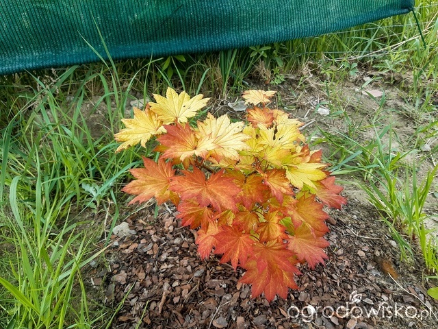 Aconitifolium jest cudny. Wczesną wiosną ma listki żółto zielone, potem robią się całkiem zielone, pamiętam, że ma też noski kontrastujące na czerwono z zielonymi liścimi, ale nie pamiętam w jakim miesiącu, a koło września liście zaczynają zmieniać się etapami na czerwone, aż robią się całkiem czerwone. Kształt liści tego klona też mnie zachwyca.