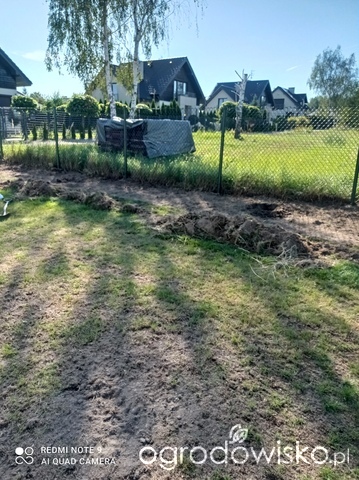 Postanowiliśmy dokończyć żywopłot z tujek po południowej stronie. Przygotowaliśmy teren - łatwo nie było bo chwasty przerastają z niekoszonej łąki.