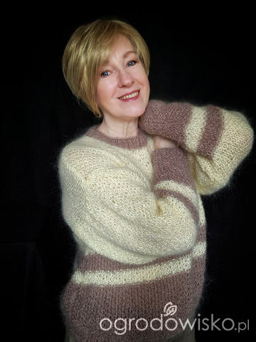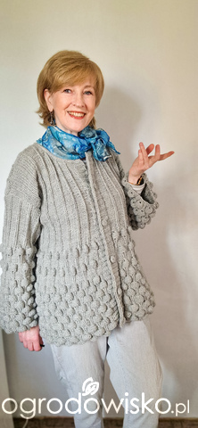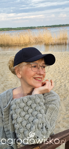 Miło mi Ewo, że ci się podoba u mnie w ogrodzie, dziękuję za pochwałę sweterków i zdjęć. Dzierganie na drutach i szydełku mocno mnie wciągnęło, kazdą wolną chwilę plątam wełnę. Swetrów mam na prawdę dużo, każdy z bardzo dobrej jakościowo wełny i każdy innym ściegiem robiony. Mój ulubiony to ten szary w bąble, można go ubrać zawsze i wszędzie. Teraz też dziergam sweter w bąble - bardzo podoba mi się ten wzór, ale idzie na niego bardzo dużo wełny. Będzie bławatkowy z niebieskim i reszta błękitna. Ten czerwony w liście też ma piękny wzór i bardzo pracochłonny. Ja lubię wyzwania, więc nie zrażam się trudnościami. Kiedyś wyszywałam i bardzo dużo szyłam, praktycznie wszystko szyłam sobie i dzieciom, takie były czasy. Była budowa domu, przerabiałam co się dało,albo kupowałam niedrogi materiał, robiłam formę i szyłam. Pokaż swoje wyszyte rzeczy.