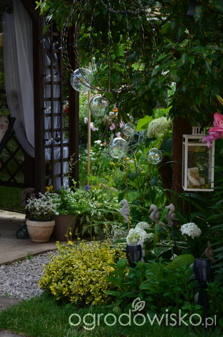 W zimie robiłam kwiaty z krepiny, zdobiły altanę całe lato.