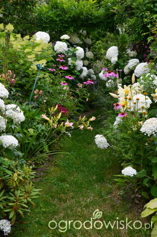 Dorotko ogród Twój nawet bez trawnika jest niesamowity bo tworzysz w nim cudny klimat swoimi pomysłami, aranżacjami, dekoracjami. Może by warto pomyśleć nad zastąpieniem trawnika przynajmniej tam gzie ścieżki między rabatkami jakąś inną nawierzchnią? Może kamyki, a może kora lub coś innego.... nie psułoby latem odbioru, nie potrzebowało podlewania i nie podłamywało ogrodniczo.