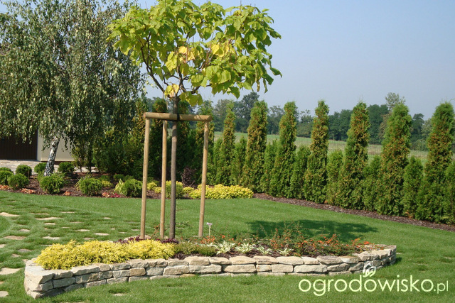 Rabaty wyspowe z wymurowanymi murkami też byłyby ładne, tylko czy z tego kamienia? Czy macie wykonawcę, który by to ładnie zrobił?