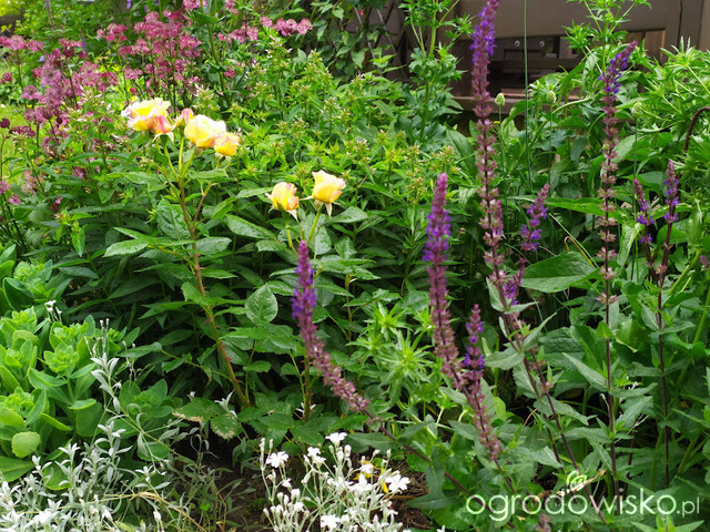 Przekonałam się do koloru żółtego - mam i żółte róże pomieszane z werbeną i białymi jeżówkami, i żółte liliowce - połączone też z białym i fioletem. Wydaje mi się, że jest ok