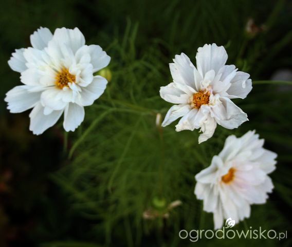 kwitną kosmosy, choć nie w takiej ilości jak rozrzucane nasiona