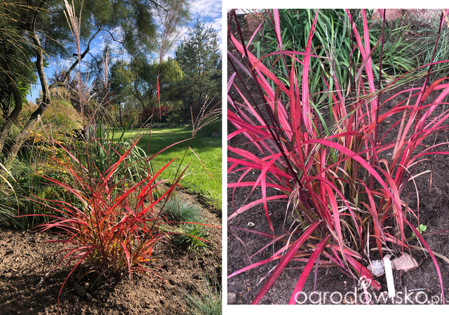 Jest kilka niewysokich miskantów chińskich, które pięknie się przebarwiają w czerwieniach. Pamiętaj jednak, że z tym przebarwianiem na czerwono nie jest tak prosto. Przede wszystkim słońce i jeszcze raz słońce. Po drugie wilgotno, choć nie mokro. A poza tym często zdjęcie, o czym przekonałam się fotografując