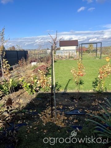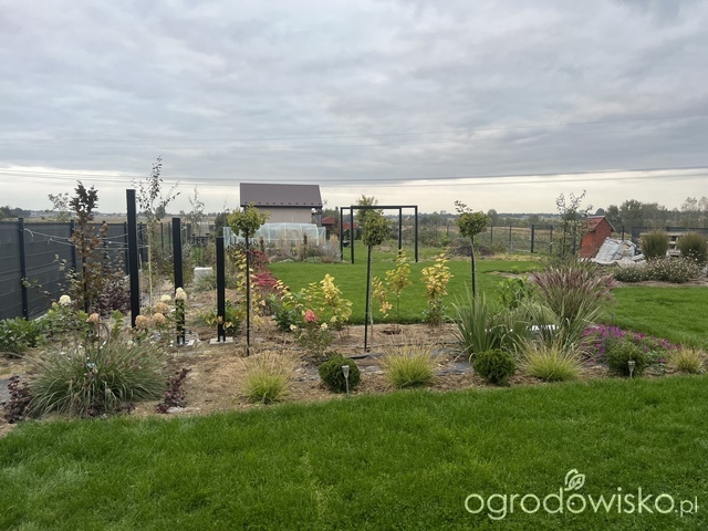 Zamontował też słupy drewniane, które wymyśliłam jako elementy dekoracyjne i dał paliki do większości drzewek.
