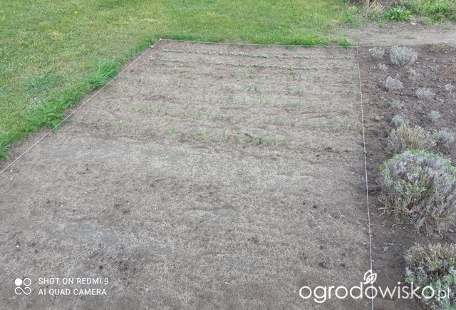 Starsza część warzywnika, widać pomału marchew, koper i sałatę.
