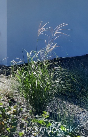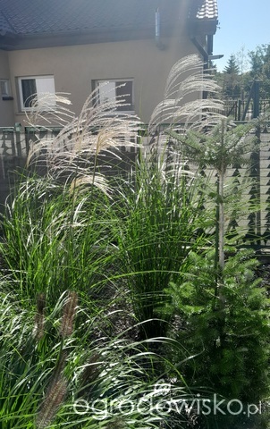 Zupełne inaczej mają się trawy na brzozowej, gdzie ledwo je widać. Największy miskant jest taki: