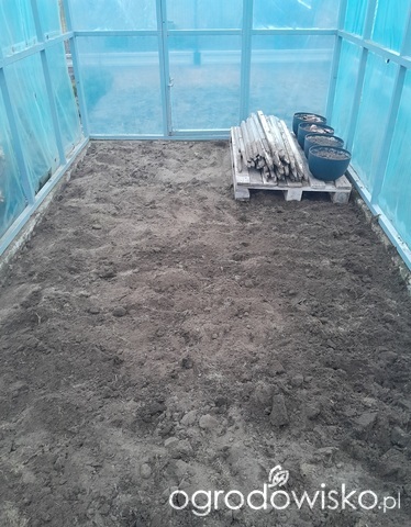 Przekopałem, a właściwie przemieszałem, ziemię w foliaku. Trochę poprzestawiałem doniczki, worki ze zrębką, czy paliki. Fajnie było rozruszać się po zimie