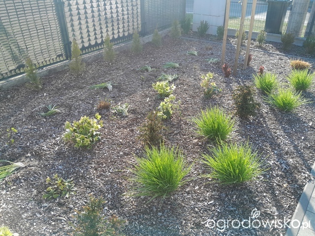 Dziękuję Marta Rabata będzie ciut inna niż dotychczasowe. Ale nadal bez rzędów, tylko sadzenie "trójkami". Wydaje mi się, że przez cały sezon będzie ciekawa, jest dużo roślin kwitnących i 3 drzewa kwitnące Jesienią trawy zrobią efekt. Najgorsza będzie zima. Ale tu nie potrzebuję zasłony - mata w ogrodzeniu to robi.