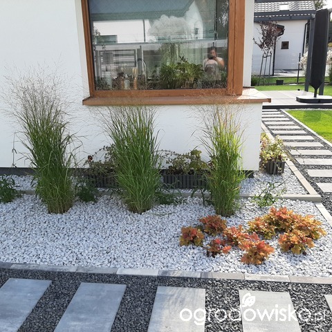 Na frontowej rabacie dosadzone proso i za jimi werbena patagonska