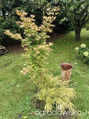 Jasny klonik współgra z jasną hakonką dobrze. A może żeby uniknąć ściachania roślin po prostu ogrodzisz w prosty sposób? Jakieś kijki wbite w ziemię i oplecione sznurem?