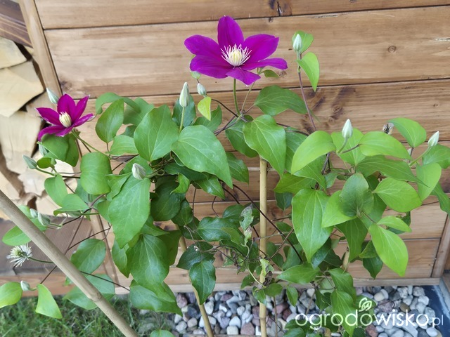 Uratowany clematis obsypany pąkami