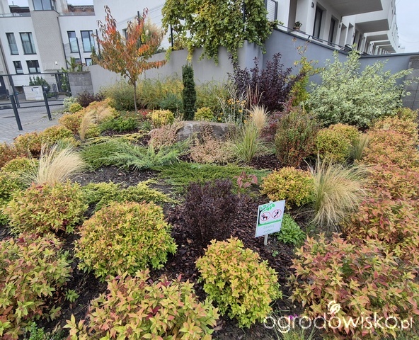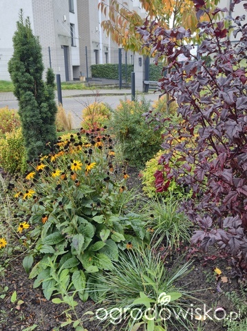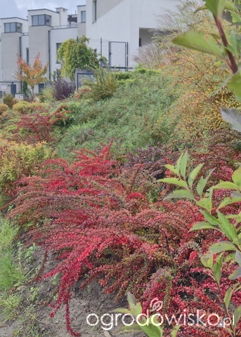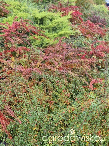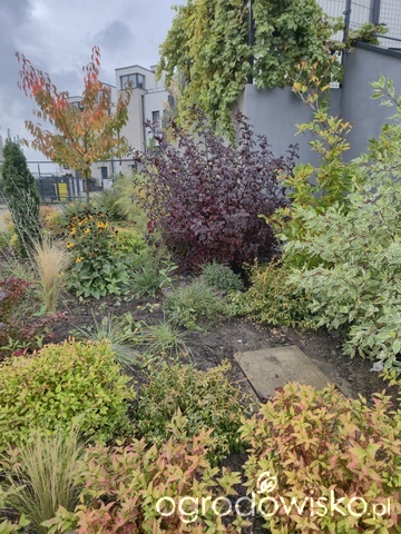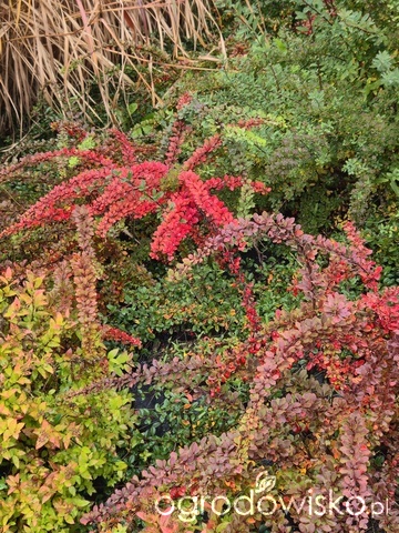 Kalina białojagodowa (kalina naga) soczyste liście przypominające mi nieco rododendrony, ozdobne owoce, piękne przebarwienia