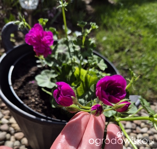 mnóstwo roślin, fajne klony palmowe i już pelargonie, begonie i wiele innych. Wzięłam pelargonię do jednej donicy, bo kolor mi się podobał, ale schowałam na noc do domu. Moich ulubionych Rosebud Astrid jeszcze nie było. Były też fajne donice ceramiczne, małe i duże o fajnej fakturze, wzięłam mniejszą na jakiegoś rojnika, nie mogłam się oprzeć, jutro pokażę