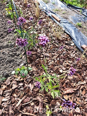 Oj, ale się szykuje fajna rabatka trawiasto- hortensjowa! Werbena pasuje tu idealnie, jeśli dasz jej słuszną kołderkę z kory, to najprawdopodobniej przetrwa zimę ( u mnie zimuje tak już kilka sezonów). Ogródeczek pięknie oczyszczony i przygotowany na następny sezon