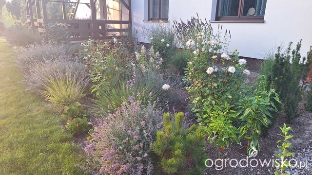 Muszę przenieść rozplenice Hammeln, bo zupełnie nie radzą sobie na patelni. Tak samo róże za nimi. Tuje już zaczynają je pożerać. Potrzebuję tu jakiejś niezniszczalnej byliny, która wytrzyma południową wystawę. Na liście mam knautię macedońską i to koniec listy. Bede wdzięczna za podpowiedzi.