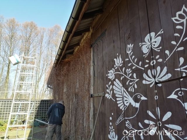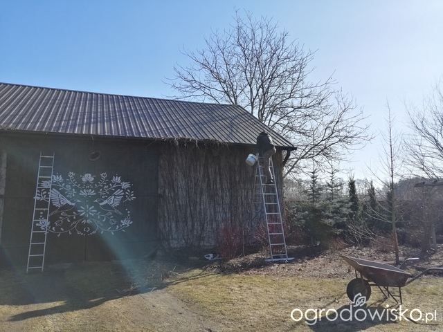 Przycięliśmy bluszcz pięcioklapowy na stodole: