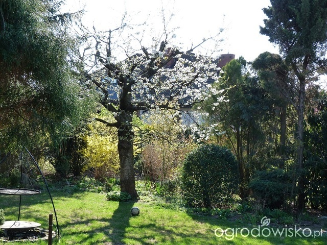 Czereśnia nareszcie rozkwita. Rok temu miała już wszystkie kwiaty w pełnym rozkwicie