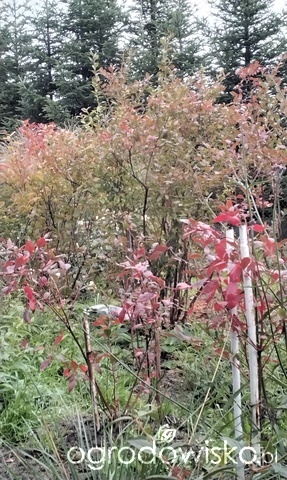 W jagodniku młode borówki bardziej czerwone od starych krzaczków są delikatniejsze i szybciej reagują na zimne noce. A dąb błotny jeszcze zielony