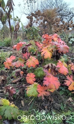 Krzewuszka i bodziszek wspaniały- cudnie trzymają liście, kolorki zachwycają