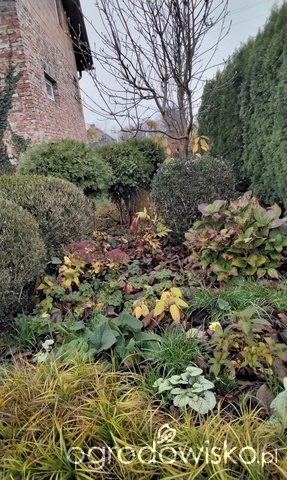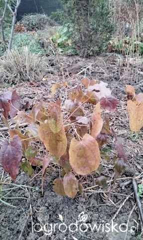 Epimedium, dostałam od sąsiadki, rosło kilka lat w jednym miejscu, niecwiedziałam że ma tak rozrośnięte korzenie, podzieliłam na 4 sadzonki. Zrobiłam niewielką obwódkę. Fajne kolorki łapie jesienią.