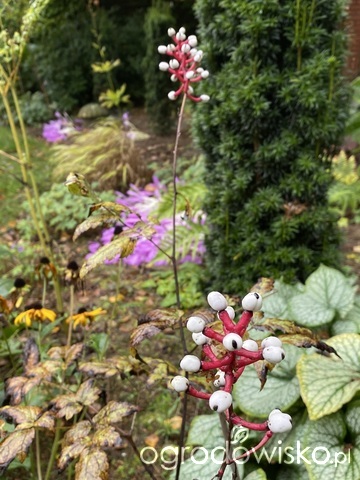 Z tym czerńcem (czerniec grubopędowy 'Misty Blue') miotałam się kilka lat. Złe stanowisko, chorujące liście, ale udało mi się go rozmnożyć, przesadzić i oto zaczyna kwitnąć i wytwarza takie piękne owocniki