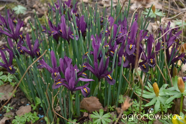 Próbuję rozrzucić na rabacie kępy irysów żyłkowanych. Akcja sprzed dwóch lat, grupowania cebulek.