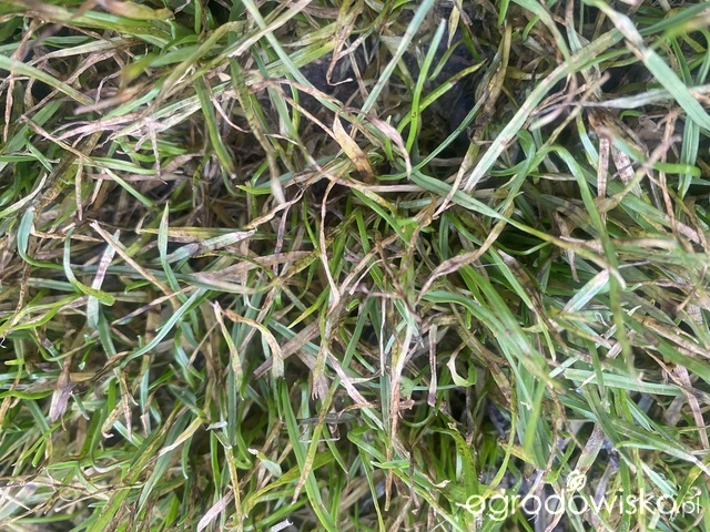 trawa ma już pare lat (ale co chwile robie dosiewki bo zawsze coś). Od jakiegoś czasu pojawiła się obok soczyście zielonej trawy bardzo żóła opadnięta (najlepiej widać to na zdjęciach). Z miesiąc temu pierwszy raz w życiu nawoziłem - Polifoska -> i pewnie zrobiłem to za późno, bo nie było tam terminu by robić to na początku czerwca. Wcześniej (wiosną) trawa była soczyście zielona, bez żadnych zżółknięć