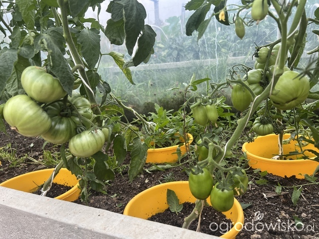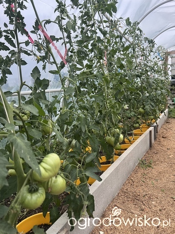 Prowadzę na jeden pęd więc za gęsto nie jest przy odstępach 50 cm w rzędzie. Za to 50 cm w gruncie to zdecydowanie za mało, bo tam mam karzełki i pomidory na kilka pędów. W tym roku w gruncie będą zachowane większe odstępy u mnie.