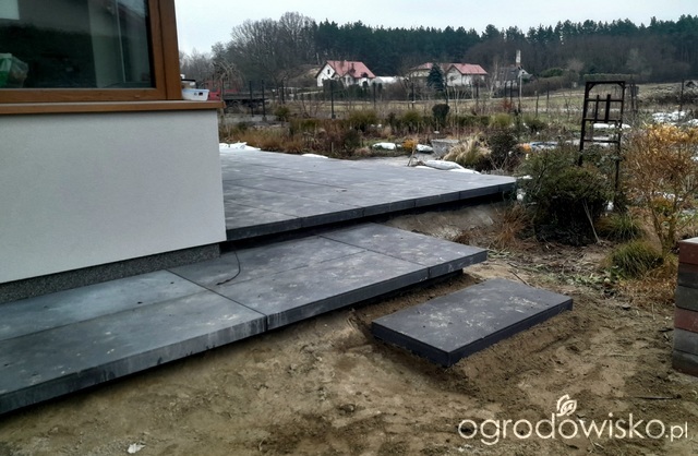 Plan na te jedną samotna płytę jest taki, że będzie ona zatopiona w trawniku, albo żeby nie utrudniać sobie życia koszeniem, w karmniku ościstym albo jakiejś rozesłanej tojesci czy innej płożącej roślince.