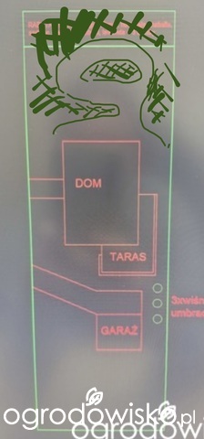 Mam prostokątna działkę, wjazd z długiego boku, dom po lewej stronie działki i po prawej glówny ogród.