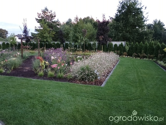 Musisz przemyśleć układ rabat. Możesz kontynuować tak jak ta jedna duża po innych stronach dzialki.