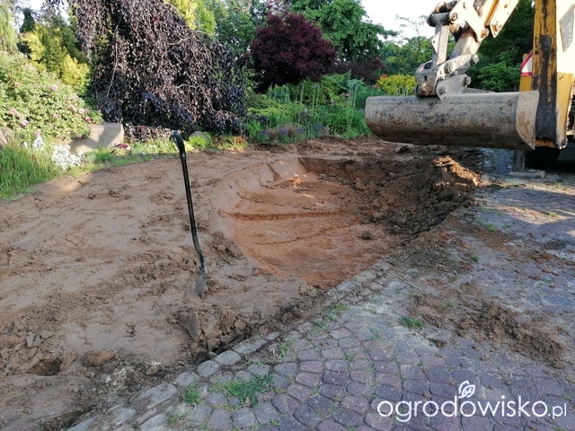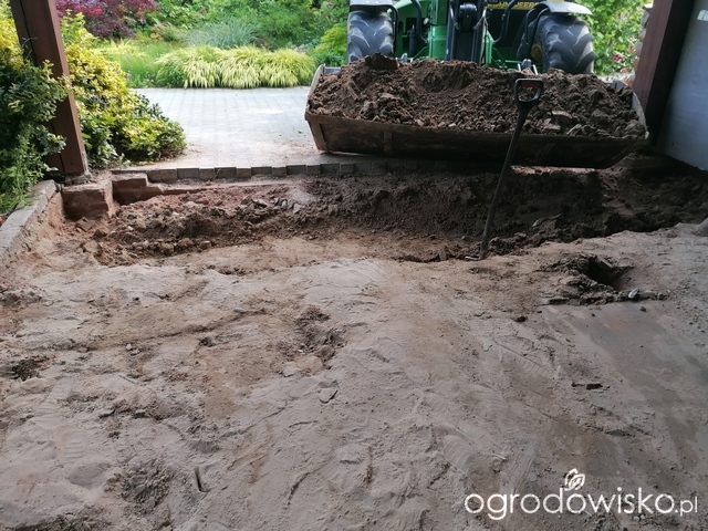 Decyzja, że jednak całą darń należy usunąć i to nie ręcznie jak poprzednim razem, potem wyznaczyć rabatę (czerwiec 2025)
